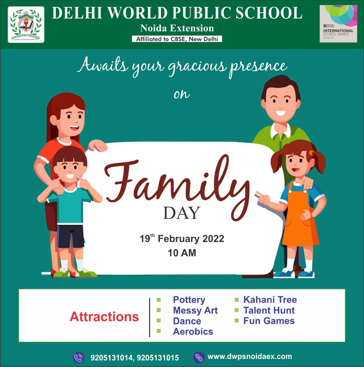 “Family is a life jacket in the stormy sea of life” – J.K.Rowling Delhi World Public School,Noida Extension,is going to organise a Family Day on 19th February,2022 to create a